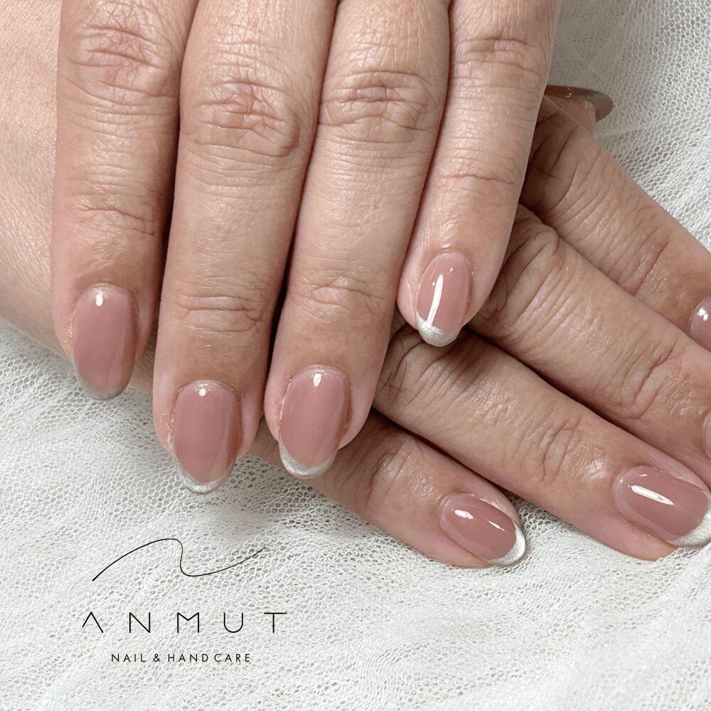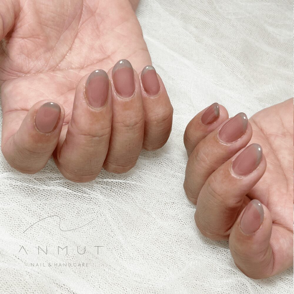 肌なじみの良いワンカラーにマグネットカラーでフレンチネイル