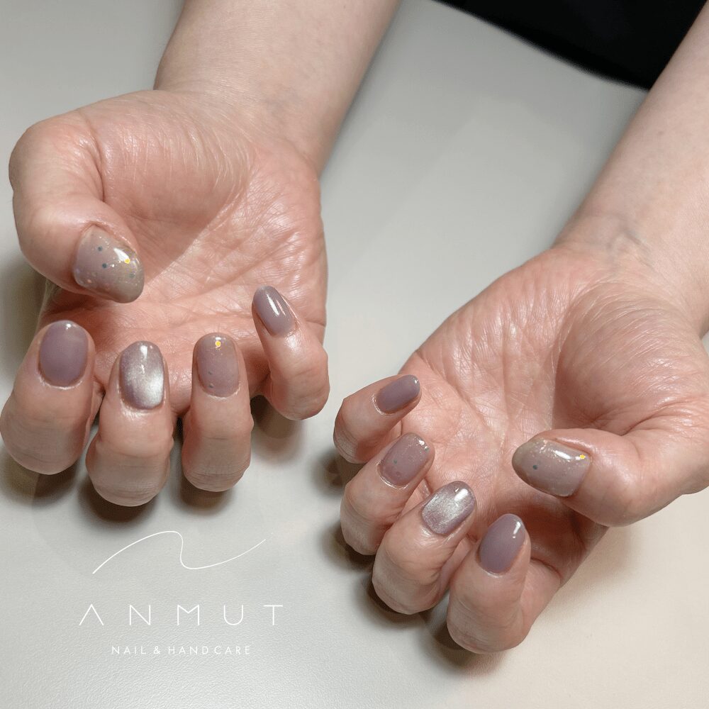 ホロラメ+マグネット+ワンカラーでも派手になり過ぎない大人可愛いデザインです